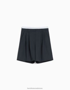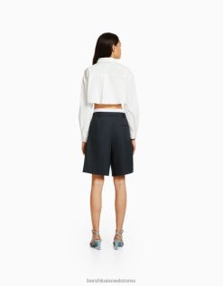 נשים מכנסי ברמודה מחויטים אפור כהה 2L6JD1686 Bershka הַלבָּשָׁה