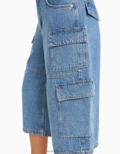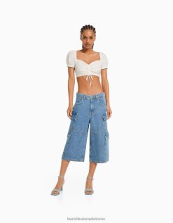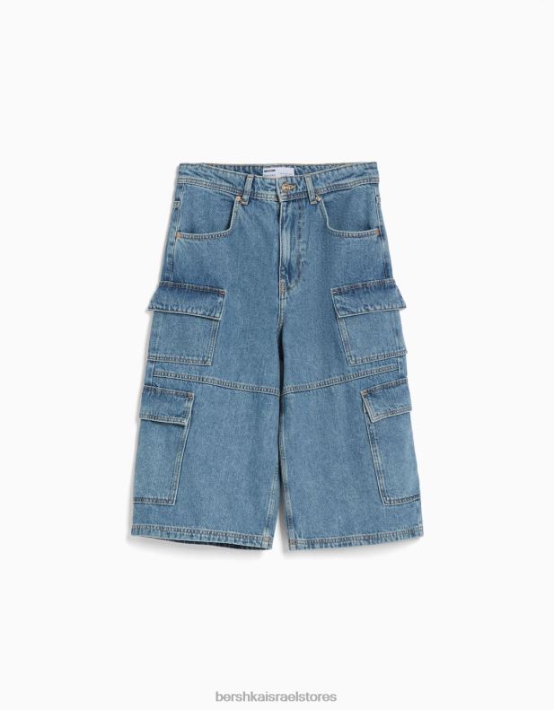 נשים מכנסי ברמודה מטען ג’ינס רחבים כחול בהיר 2L6JD1391 Bershka הַלבָּשָׁה