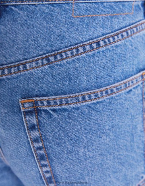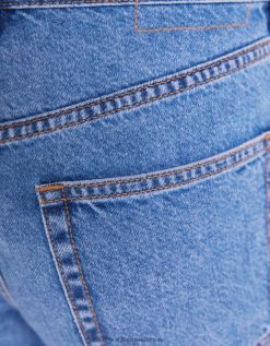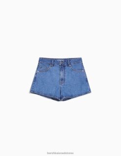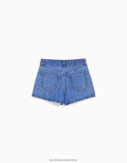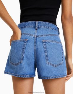 נשים מכנסי ג’ינס קצרים בכושר אמא כחול בהיר 2L6JD1683 Bershka הַלבָּשָׁה