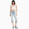 נשים מכנסי ג’ינס קצרים דהויים כחול בהיר 2L6JD1677 Bershka הַלבָּשָׁה