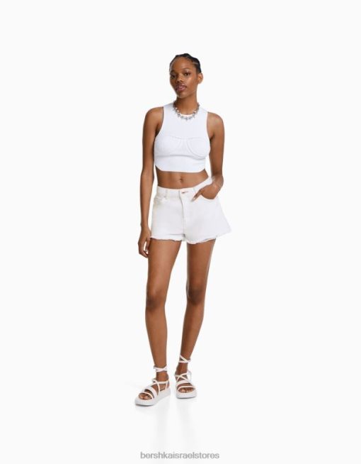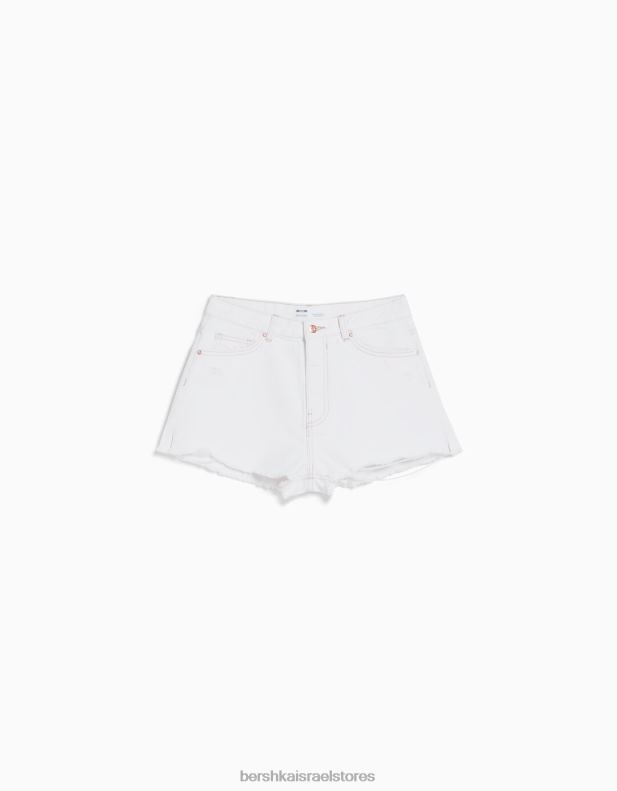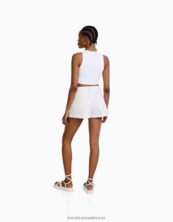 נשים מכנסי ג’ינס קצרים וינטג’ לבן 2L6JD1718 Bershka הַלבָּשָׁה
