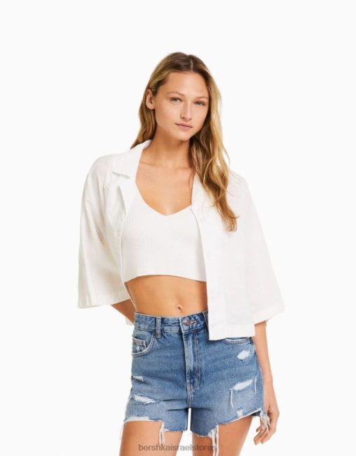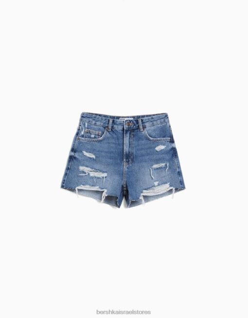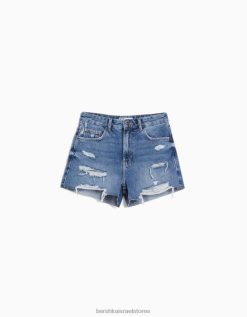 נשים מכנסי ג’ינס קצרים עם כיסים כְּחוֹל 2L6JD1711 Bershka הַלבָּשָׁה
