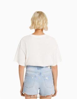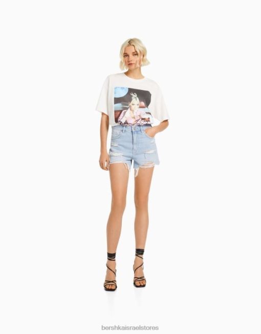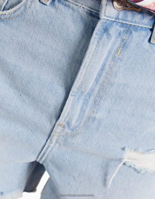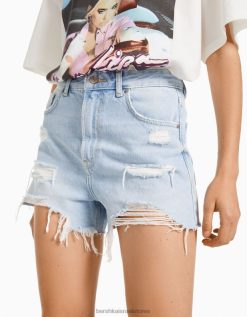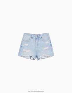 נשים מכנסי ג’ינס קצרים עם כיסים כחול בהיר 2L6JD1712 Bershka הַלבָּשָׁה