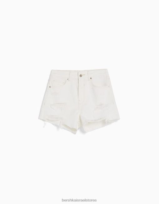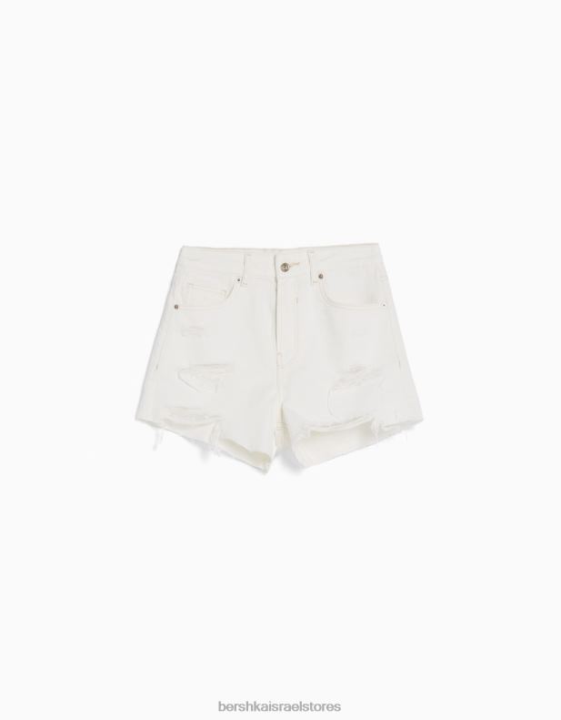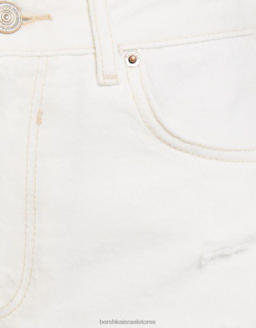 נשים מכנסי ג’ינס קצרים עם כיסים לבן 2L6JD1693 Bershka הַלבָּשָׁה