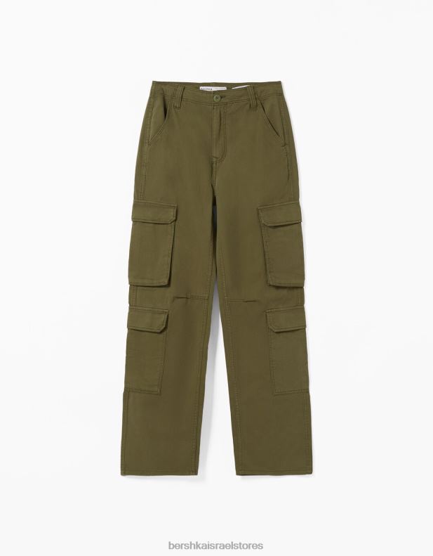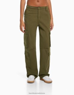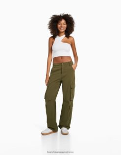 נשים מכנסי מטען אריג מרובים כיסים מתכווננים חָקִי 2L6JD1322 Bershka הַלבָּשָׁה