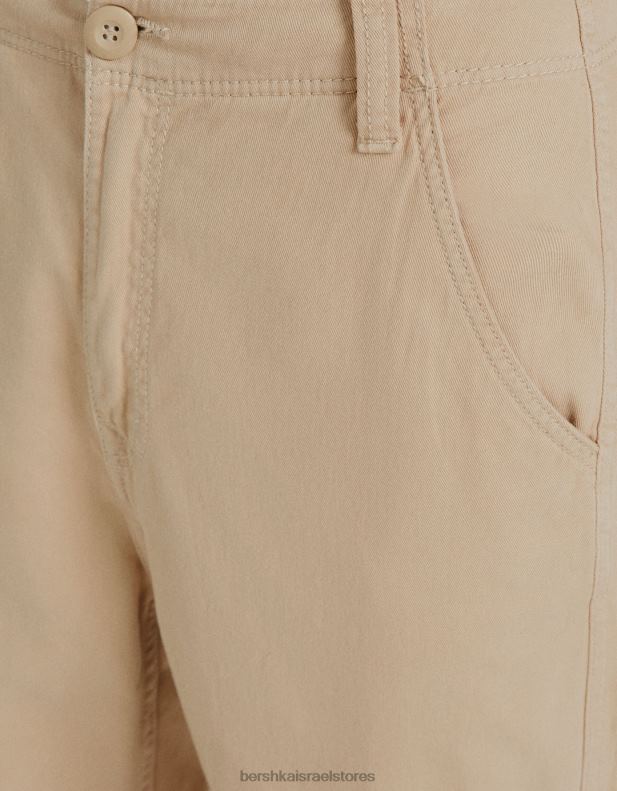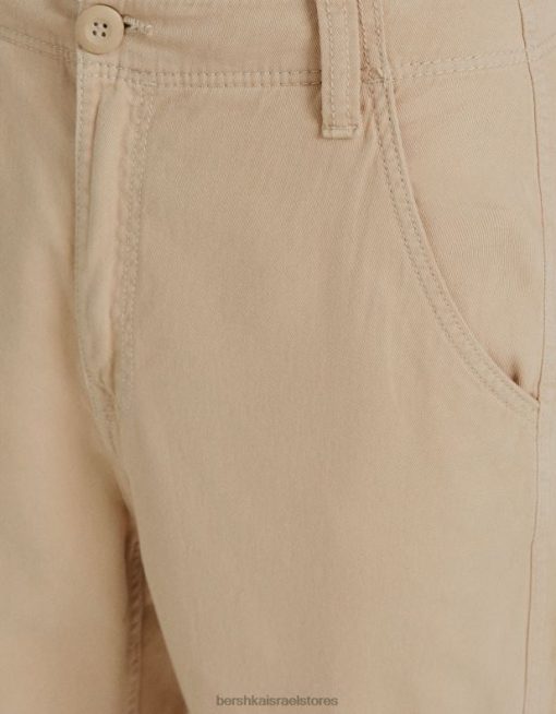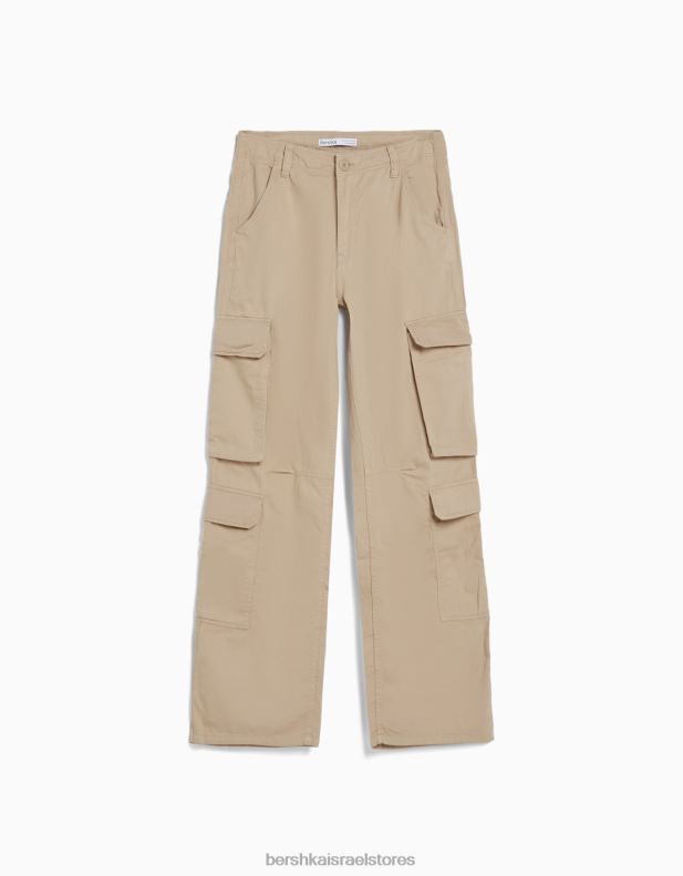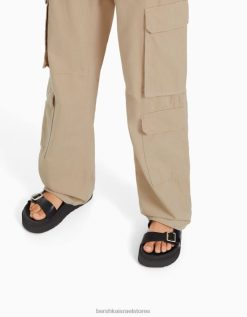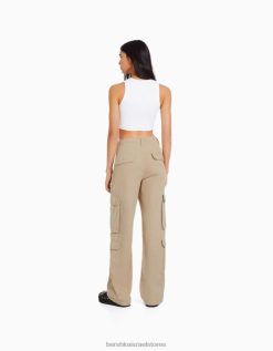 נשים מכנסי מטען אריג מרובים כיסים מתכווננים גָמָל 2L6JD1289 Bershka הַלבָּשָׁה