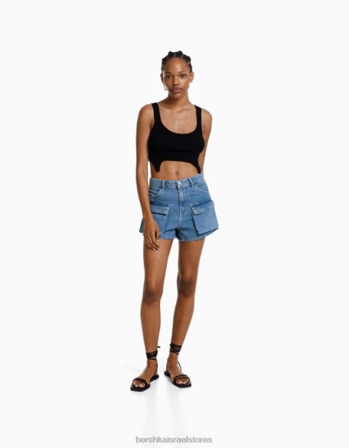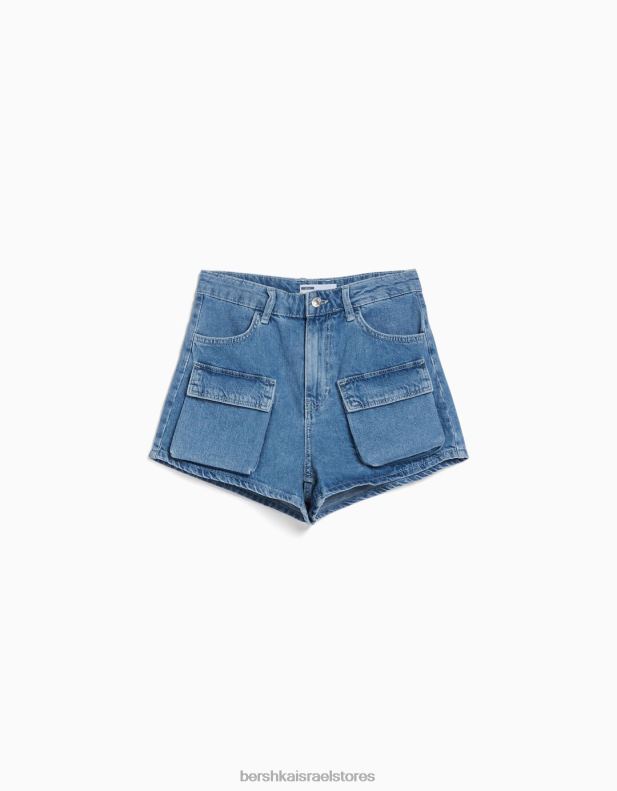 נשים מכנסי מטען קצרים מבד ג’ינס כחול בהיר 2L6JD1374 Bershka הַלבָּשָׁה