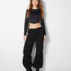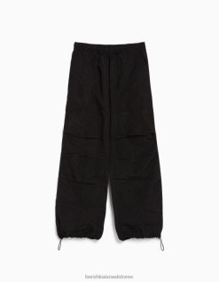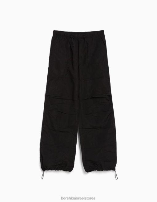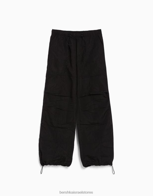 נשים מכנסי מצנח ניילון שָׁחוֹר 2L6JD1331 Bershka הַלבָּשָׁה