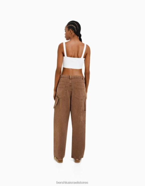 נשים מכנסי נגר בלון גָמָל 2L6JD1359 Bershka הַלבָּשָׁה