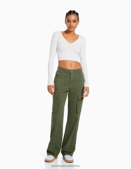 נשים מכנסי קרגו בהתאמה ישרה בִּלעָדִי 2L6JD1306 Bershka הַלבָּשָׁה