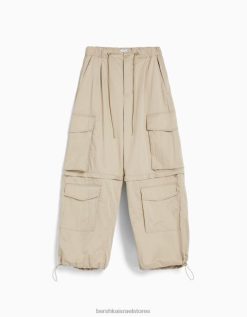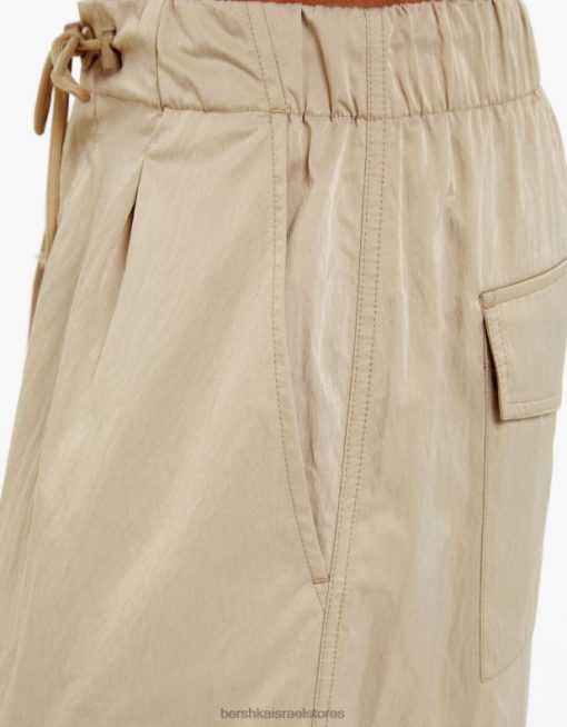 נשים מכנסי קרגו בתערובת ניילון גָמָל 2L6JD1355 Bershka הַלבָּשָׁה