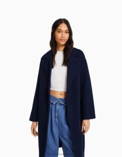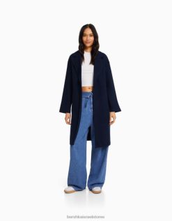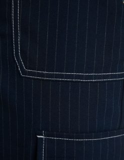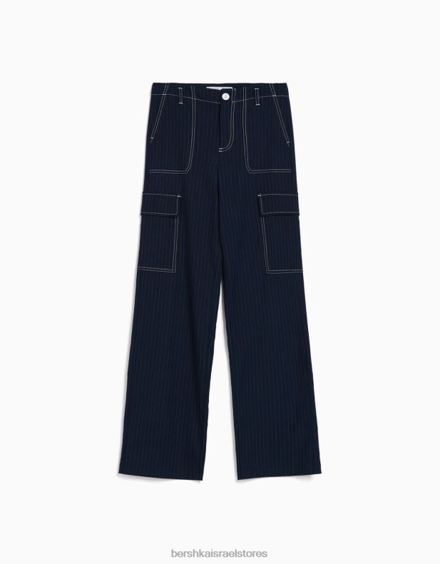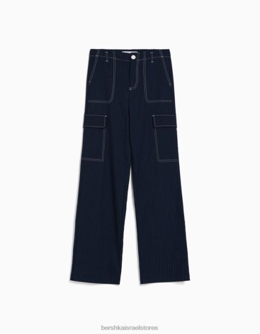 נשים מכנסי קרגו מחויטים עם פסי סיכה חיל הים 2L6JD1348 Bershka הַלבָּשָׁה