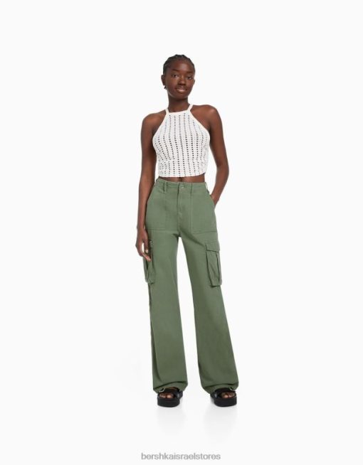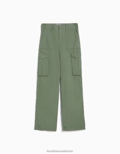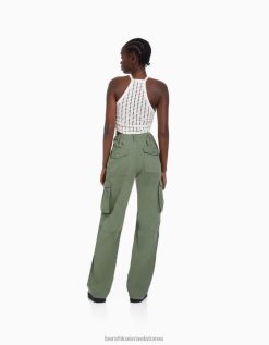 נשים מכנסי קרגו מתכווננים בהתאמה ישרה בִּלעָדִי 2L6JD1284 Bershka הַלבָּשָׁה