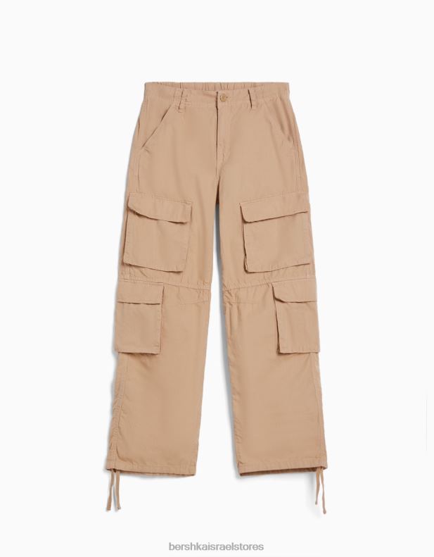נשים מכנסי קרגו עם שרוך גָמָל 2L6JD1335 Bershka הַלבָּשָׁה