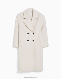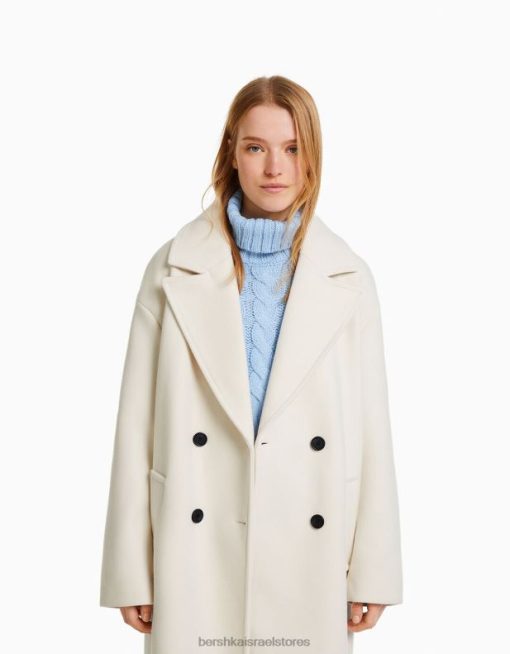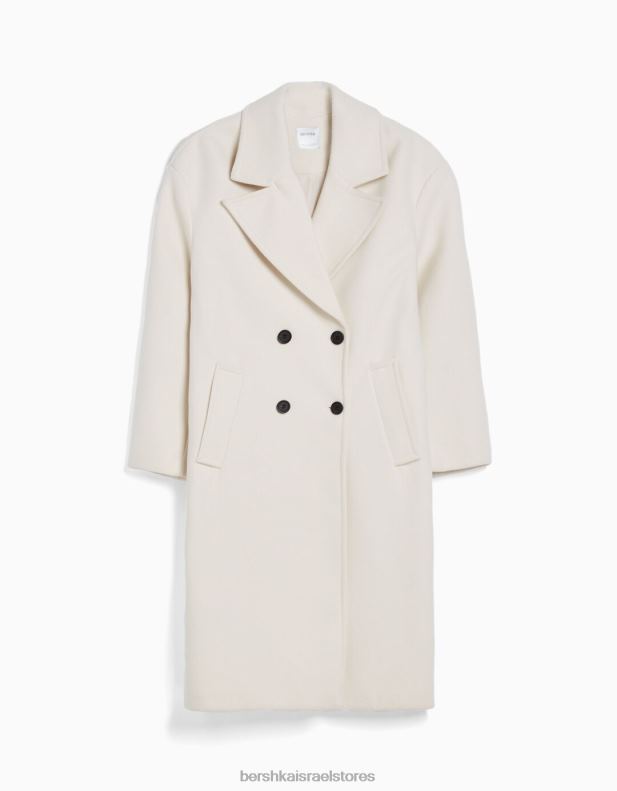 נשים מעיל ארוך בכתף קרם 2L6JD1135 Bershka הַלבָּשָׁה