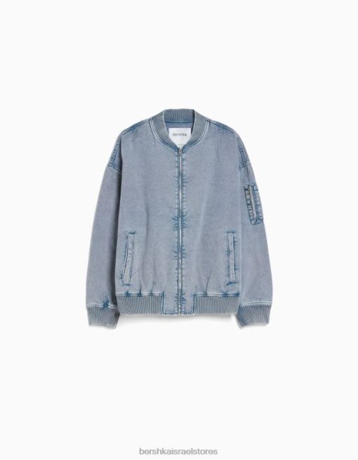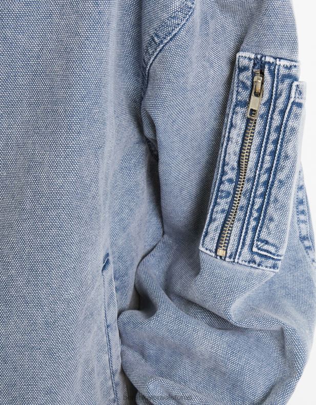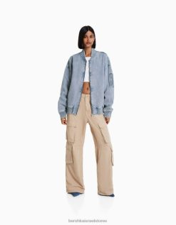 נשים מעיל בומבר מכותנה כחול בהיר 2L6JD1173 Bershka הַלבָּשָׁה