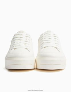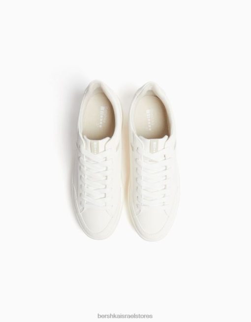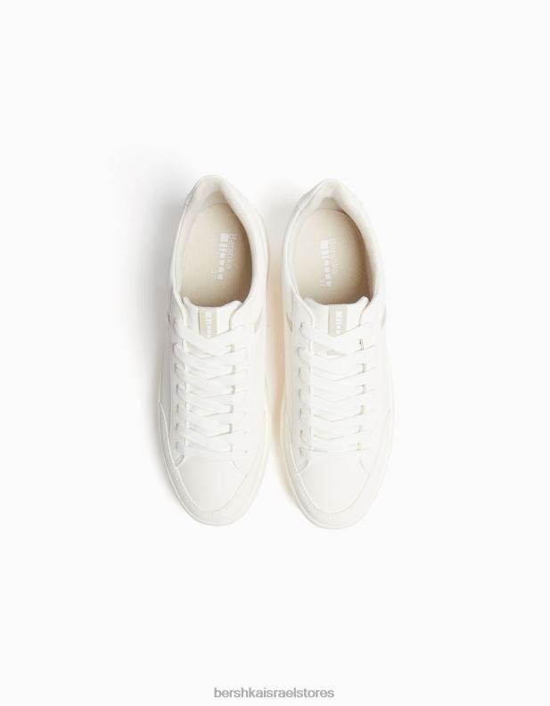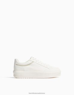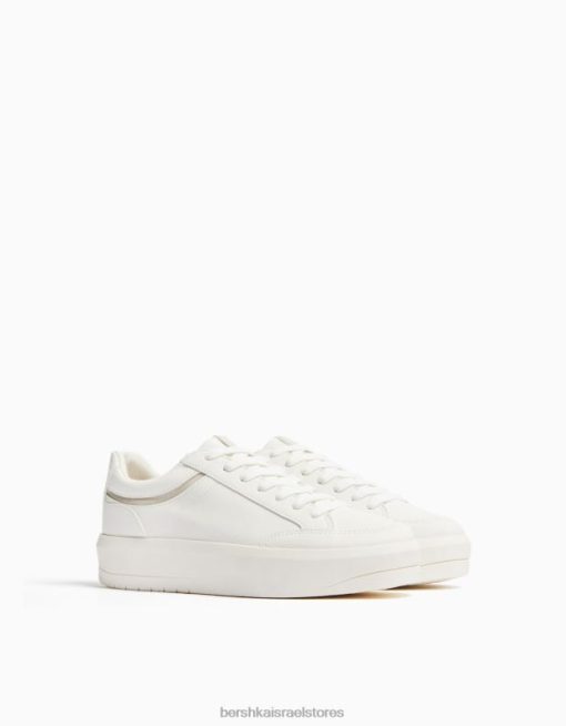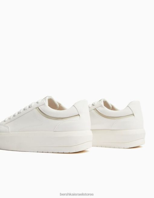 נשים נעלי ספורט פלטפורמה עם פרט תפירה לבן 2L6JD2089 Bershka הַנעָלָה