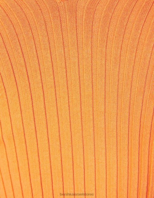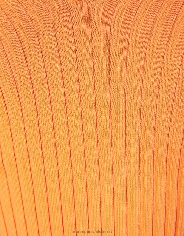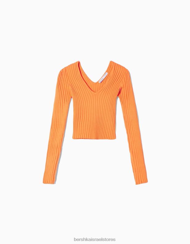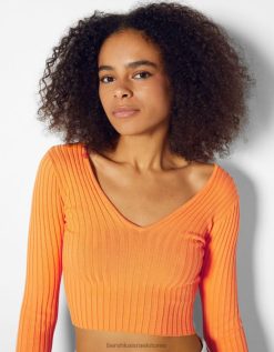 נשים סוודר מצולע עם צווארון V תפוז 2L6JD1057 Bershka הַלבָּשָׁה