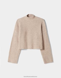 נשים סוודר עם צווארון גבוה מצולע חוֹל 2L6JD1005 Bershka הַלבָּשָׁה