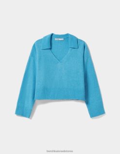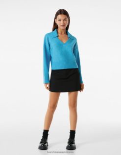 נשים סוודר עם צווארון פולו כְּחוֹל 2L6JD1030 Bershka הַלבָּשָׁה