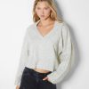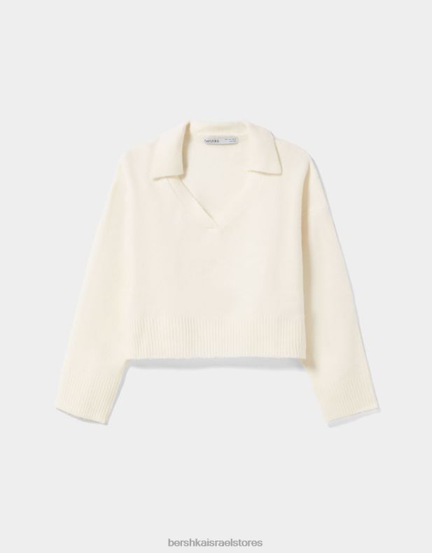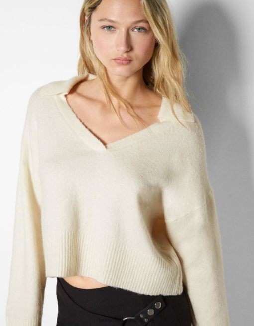 נשים סוודר עם צווארון פולו קרם 2L6JD1028 Bershka הַלבָּשָׁה