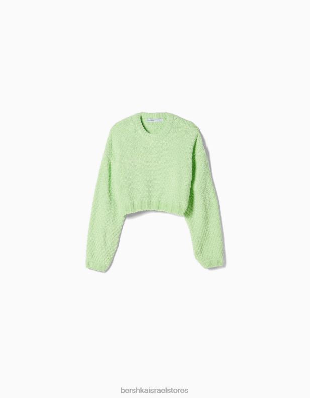 נשים סוודר שניל בעל מרקם ירוק 2L6JD1068 Bershka הַלבָּשָׁה