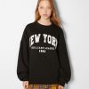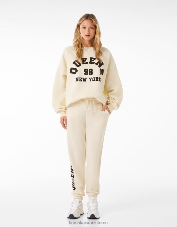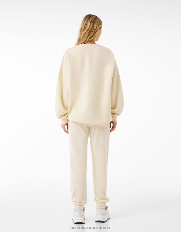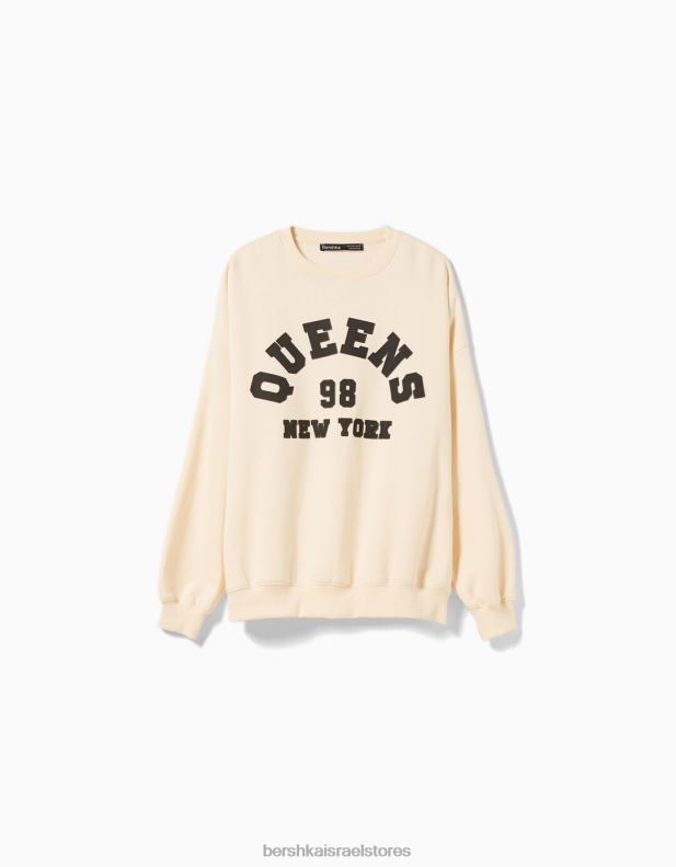 נשים סווטשירט מודפס אוברסייז בז’ 2L6JD1246 Bershka הַלבָּשָׁה