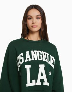 נשים סווטשירט מודפס אוברסייז ירוק 2L6JD1218 Bershka הַלבָּשָׁה