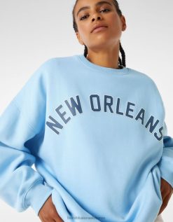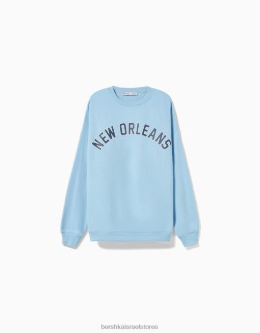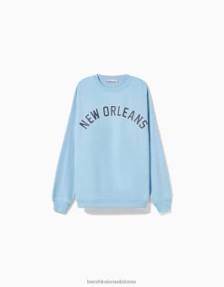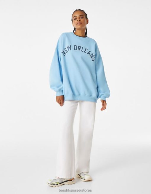 נשים סווטשירט מודפס אוברסייז כחול בהיר 2L6JD1248 Bershka הַלבָּשָׁה