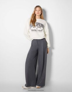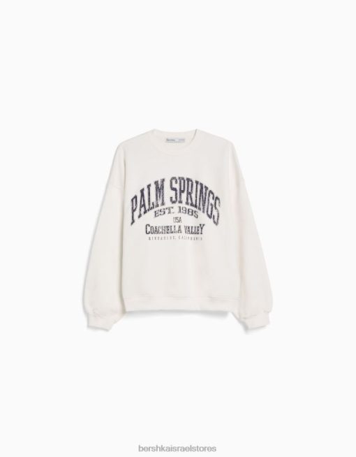נשים סווטשירט מודפס אוברסייז לבן 2L6JD1220 Bershka הַלבָּשָׁה