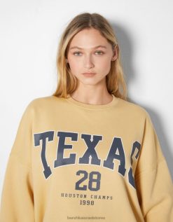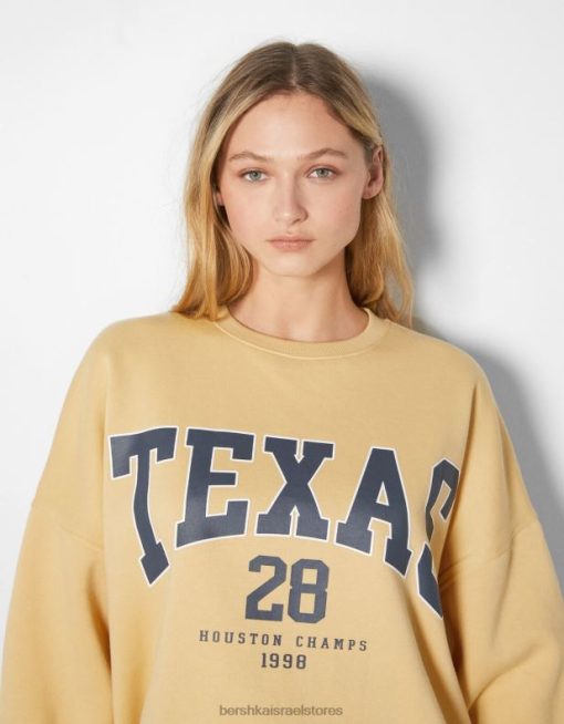 נשים סווטשירט מודפס אוברסייז צהוב 2L6JD1249 Bershka הַלבָּשָׁה