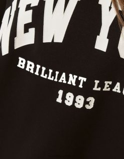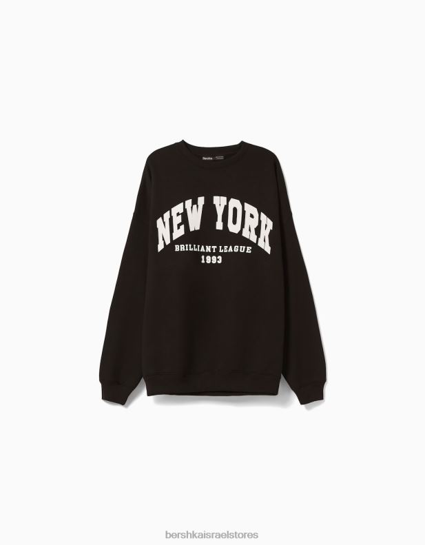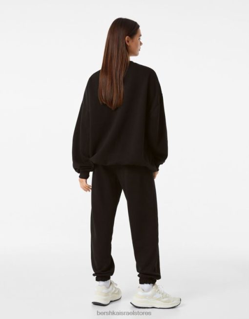 נשים סווטשירט מודפס אוברסייז שָׁחוֹר 2L6JD1244 Bershka הַלבָּשָׁה
