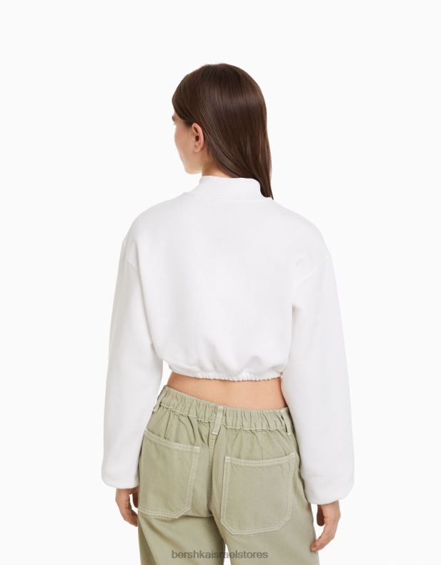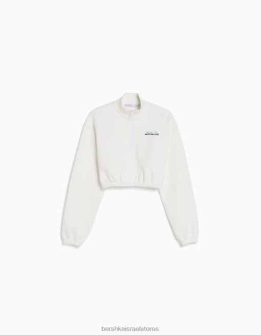 נשים סווטשירט מודפס עם רוכסן קרם 2L6JD1257 Bershka הַלבָּשָׁה