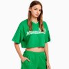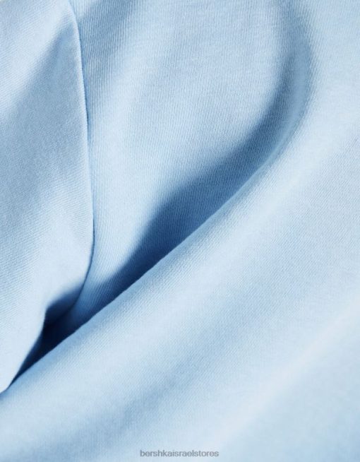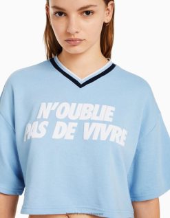נשים סווטשירט עם צווארון V עם הדפס כחול בהיר 2L6JD585 Bershka הַלבָּשָׁה