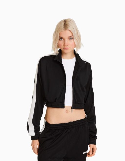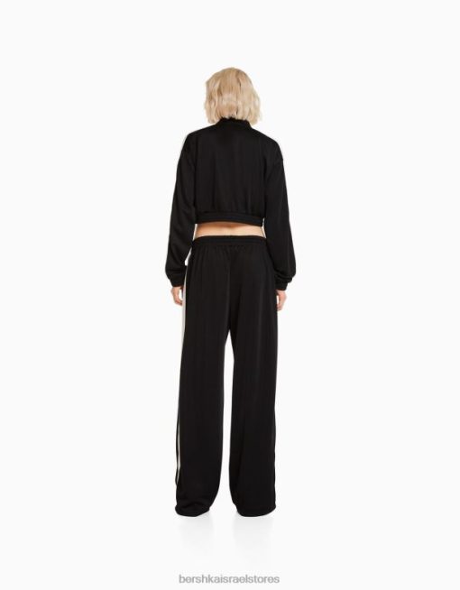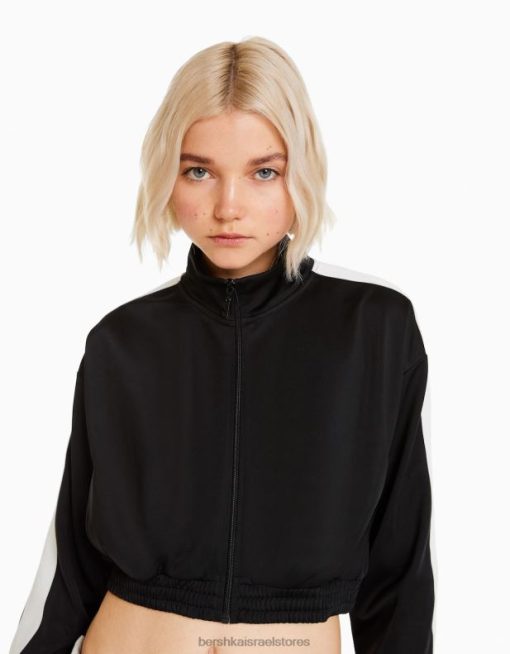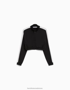 נשים סווטשירט עם רוכסן ופסי צד שָׁחוֹר 2L6JD1239 Bershka הַלבָּשָׁה
