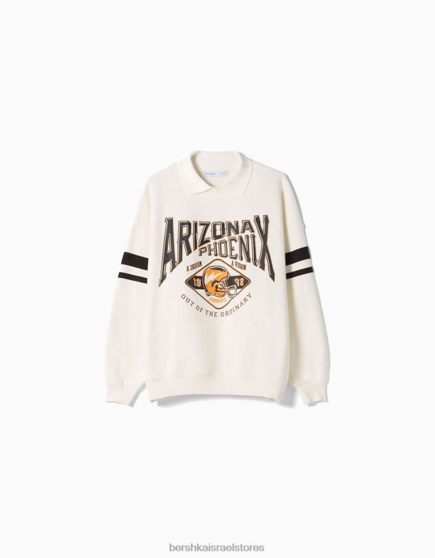 נשים סווטשירט צווארון פולו בז’ 2L6JD1275 Bershka הַלבָּשָׁה