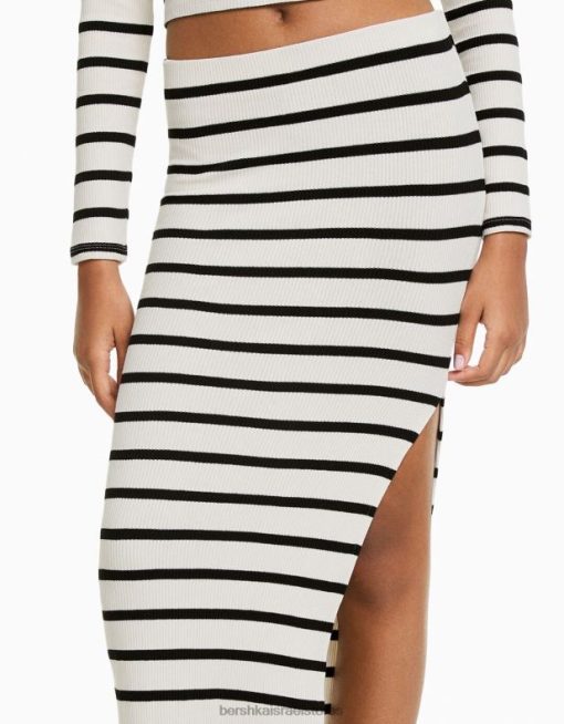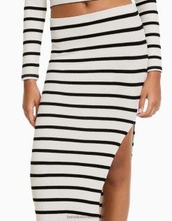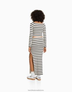 נשים סט חולצת טריקו וחצאית פסים כְּחוֹל 2L6JD2045 Bershka הַלבָּשָׁה