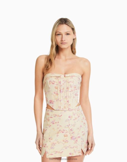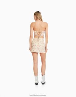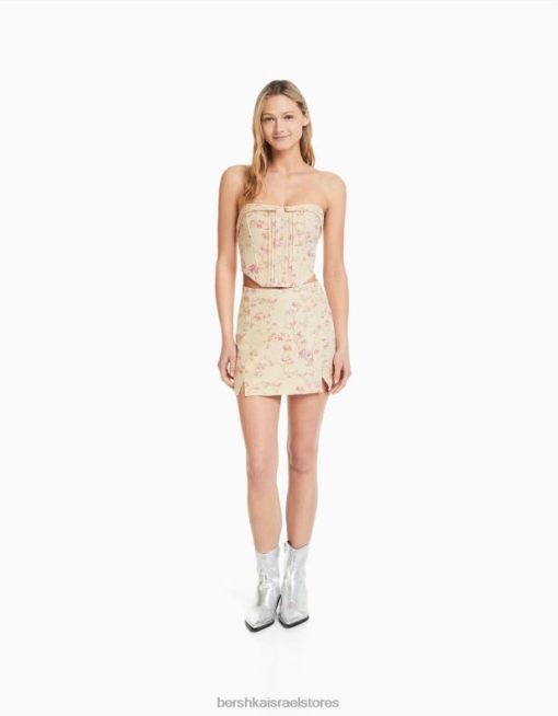 נשים סט חצאית וחלק עליון עם הדפס מרקם בז’ 2L6JD2042 Bershka הַלבָּשָׁה