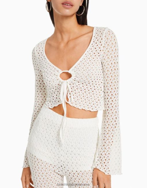 נשים סט טופ ומכנסיים קרושה צבע קרם 2L6JD972 Bershka הַלבָּשָׁה