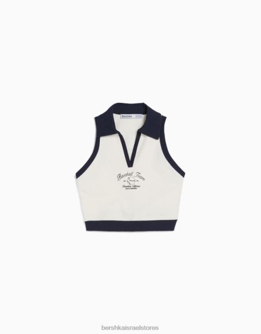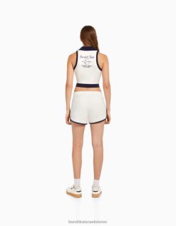 נשים סט סווטשירט ומכנסיים קצרים מודפסים ללא שרוולים קרם 2L6JD2053 Bershka הַלבָּשָׁה