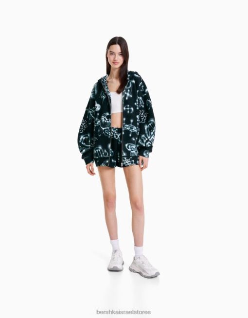 נשים סט סווטשירט ומכנסי ברמודה מודפסים שָׁחוֹר 2L6JD1213 Alehsy x Bershka הַלבָּשָׁה