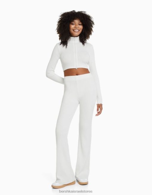 נשים סט קרדיגן מצולע עם רוכסן ומכנסיים צבע קרם 2L6JD1000 Bershka הַלבָּשָׁה