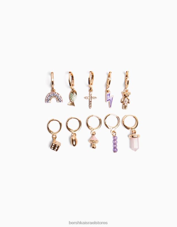 נשים סט של 10 עגילי אוזניים צלב צ’ארם זהב 2L6JD4206 Bershka אביזרים