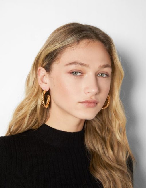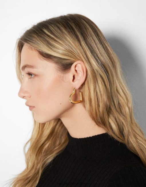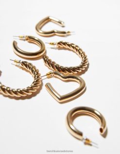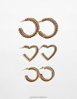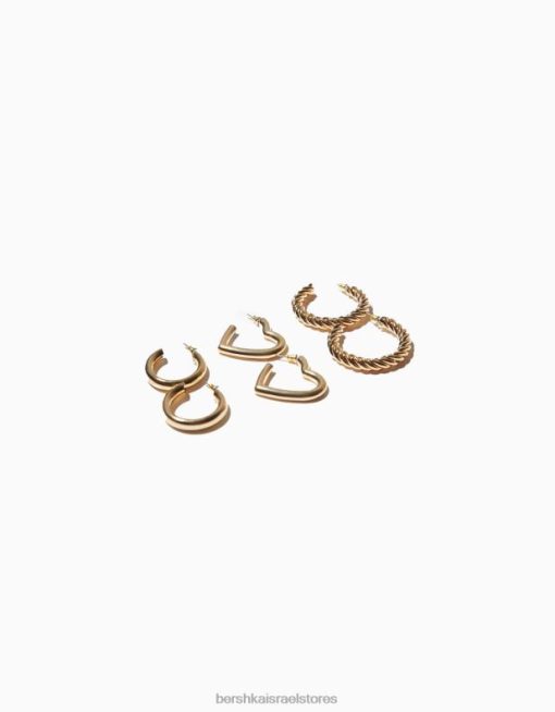 נשים סט של 3 זוגות עגילי חישוק ולב עבים זהב 2L6JD2457 Bershka אביזרים