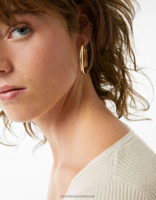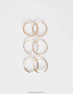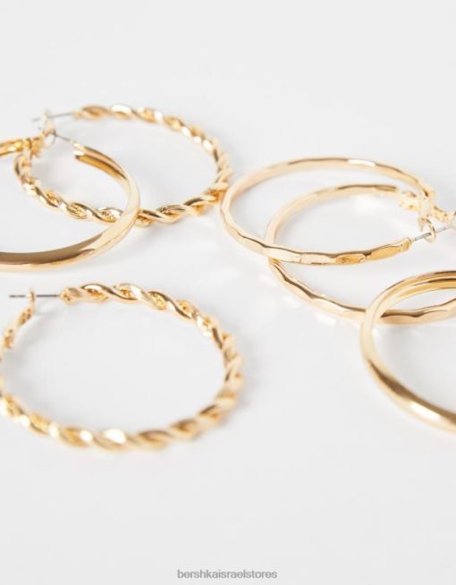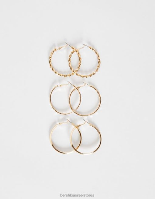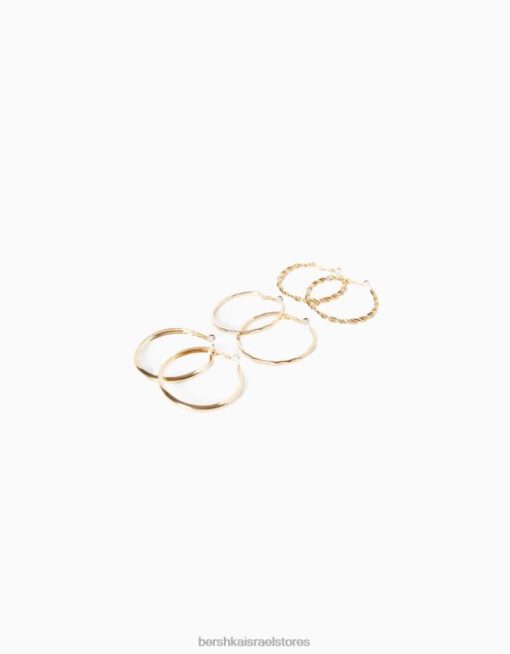 נשים סט של 3 זוגות של עגילי טבעת דקים בעלי מרקם זהב 2L6JD2511 Bershka אביזרים