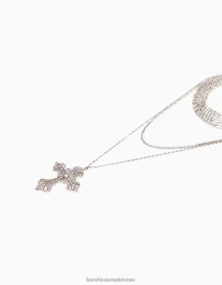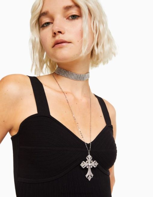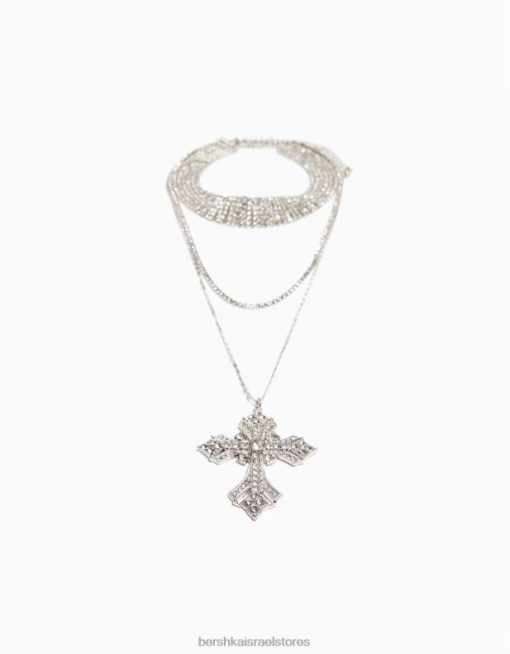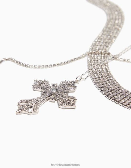נשים סט של 3 שרשראות צ’וקר ושרשרת צולבות של ריינסטון כסף 2L6JD2488 Bershka אביזרים