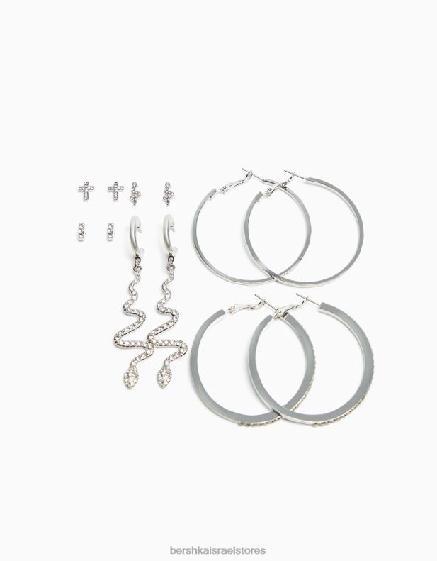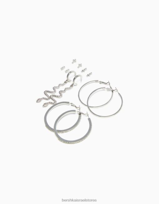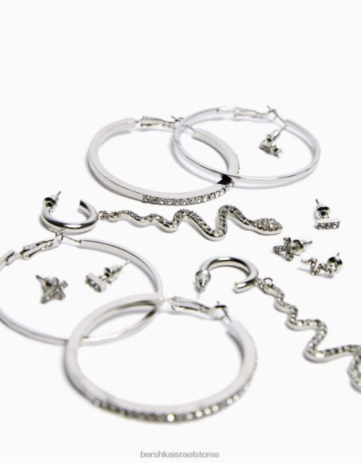 נשים סט של 6 זוגות עגילי חישוק צולב מפל כסף 2L6JD2462 Bershka אביזרים