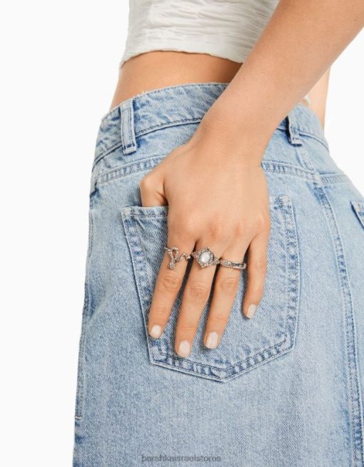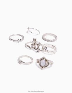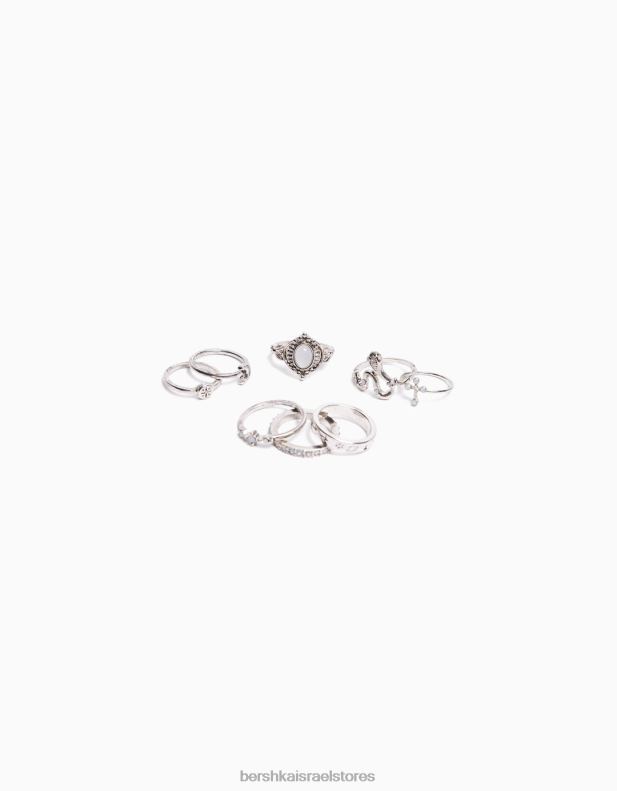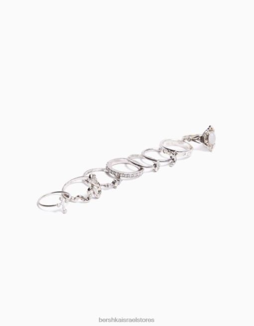 נשים סט של 8 טבעות בוהו עם צלבים כסף 2L6JD2461 Bershka אביזרים