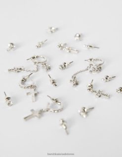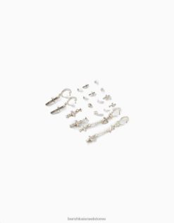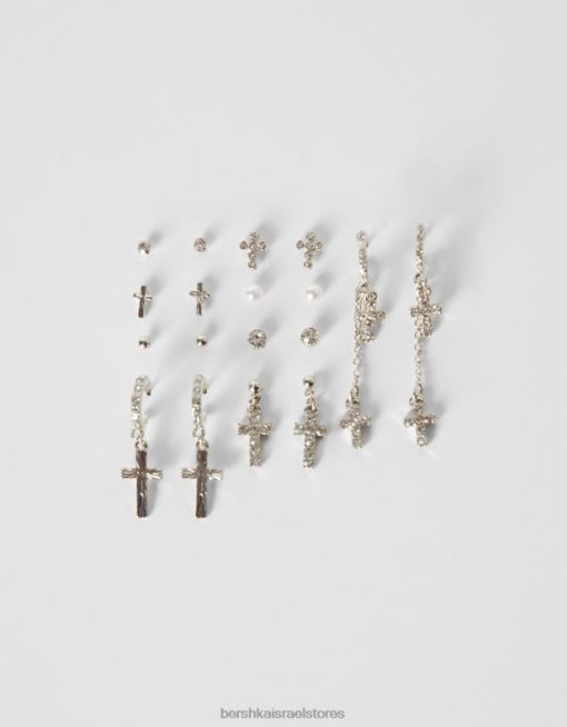 נשים סט של 9 זוגות עגילים צולבים כסף 2L6JD2515 Bershka אביזרים