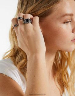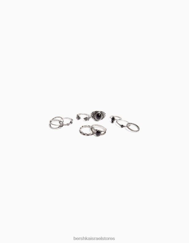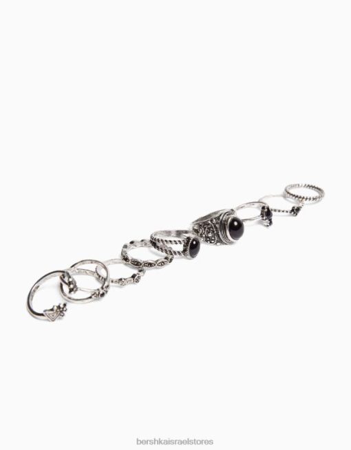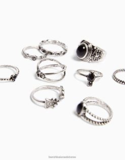 נשים סט של 9 טבעות בוהו כסף 2L6JD2486 Bershka אביזרים